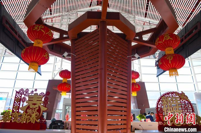 圖為拉薩貢嘎機(jī)場(chǎng)大廳年味裝扮迎接春節(jié)。貢嘎來(lái)松 攝
