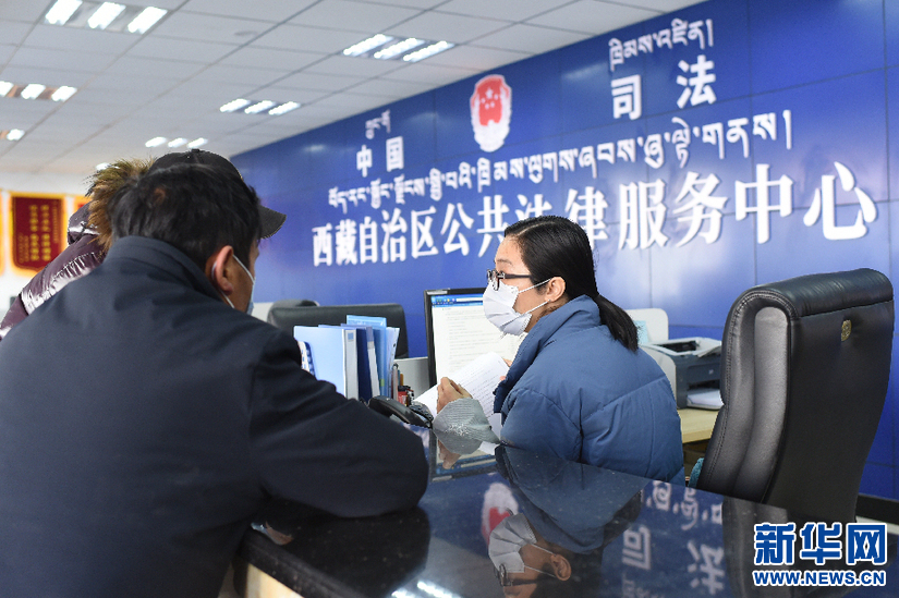 1月24日,在西藏自治區(qū)公共法律服務(wù)中心,律師為群眾講解法律咨詢(xún)。新華網(wǎng) 旦增努布 攝