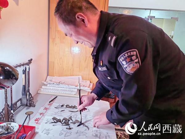 李振華在練習(xí)書(shū)法。 人民網(wǎng) 李海霞攝