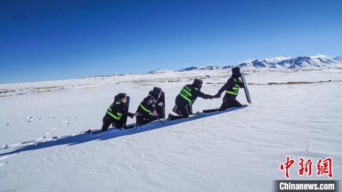 又經(jīng)過2個多小時的艱難跋涉,巡邏隊終于抵達(dá)目的地點位??辈?、鏟雪、描紅……一個環(huán)節(jié)也不能出錯,界碑就是生命,就是戍邊人的信仰。