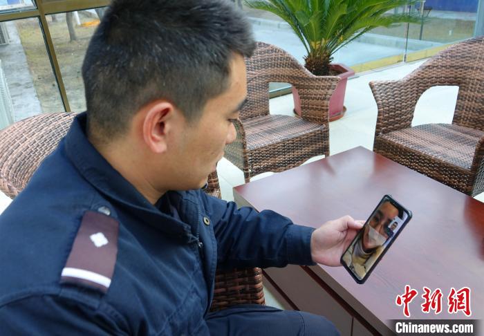 金東邊境派出所民警與家人視頻通話(huà)。冉文娟 攝