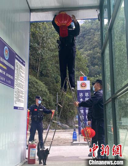 春節(jié)到來,民警把達國大橋檢查點裝扮一新。受訪者供圖