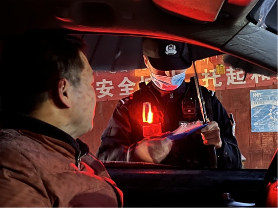 圖為林芝達(dá)國(guó)橋邊境檢查站民警元宵節(jié)當(dāng)晚在執(zhí)勤點(diǎn)檢查車(chē)輛。 姜?jiǎng)P峰 攝