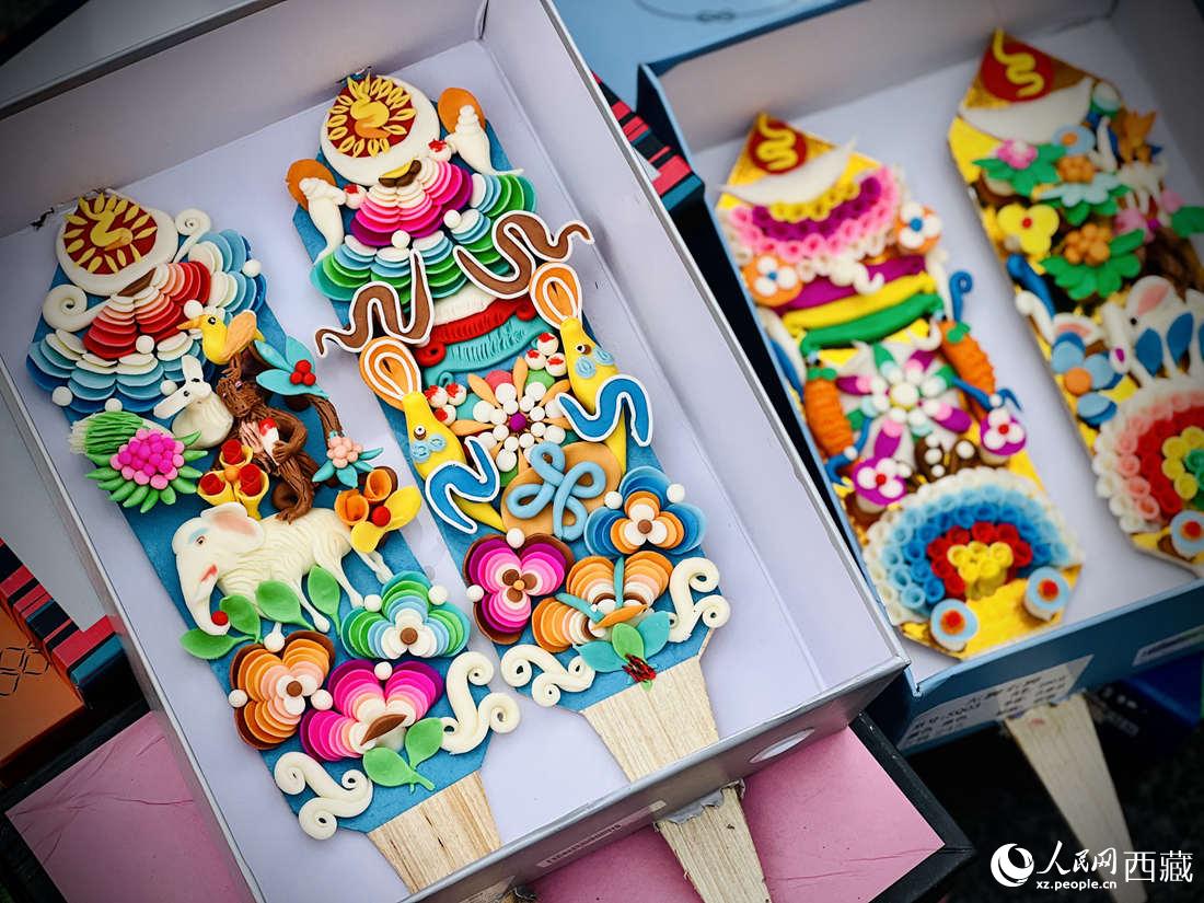 年貨市場上的切瑪盒。(切瑪盒是藏歷新年吉祥物,是在精制斗型木盒中用隔板分開,分別盛入炒麥粒和糌粑,插上“仔卓”,象征著人壽年豐、吉祥如意。)人民網(wǎng) 次仁羅布攝