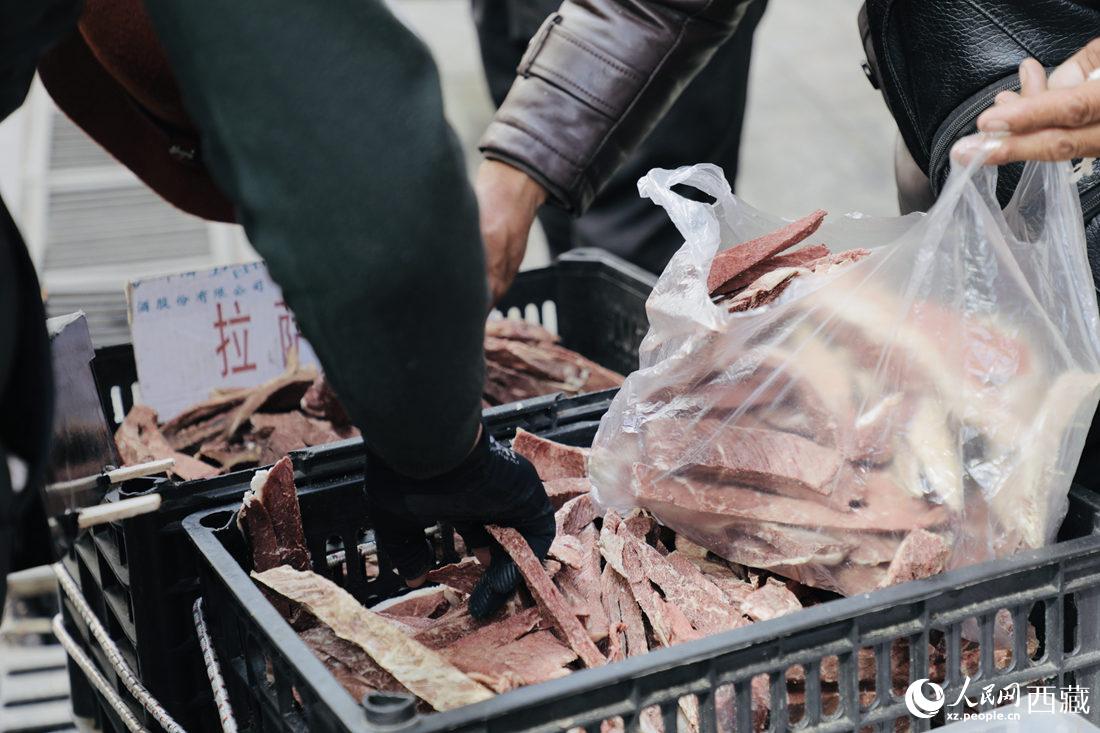 顧客正在選購牦牛肉干。人民網(wǎng) 次仁羅布攝
