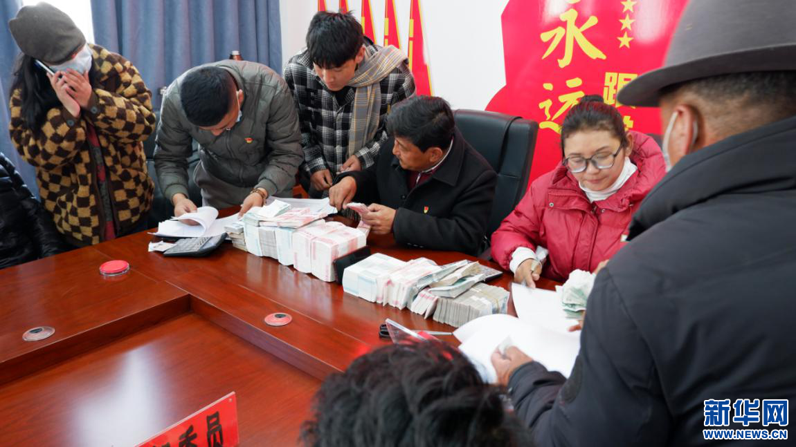 2月23日,維巴村維巴組、曲色組股份經(jīng)濟合作社分紅現(xiàn)場。新華網(wǎng) 殷小燕攝