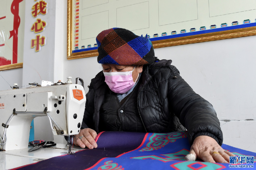 2月24日,三有村群眾在縫紉車間工作。新華網(wǎng) 旦增努布 攝