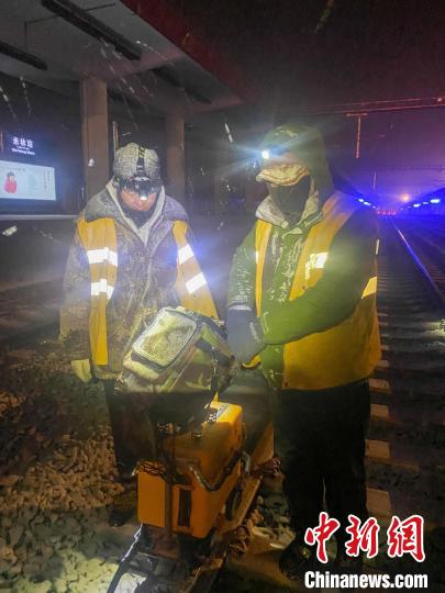 資料圖為,工人深夜在鋼軌上查找傷損?!±痛稳?攝