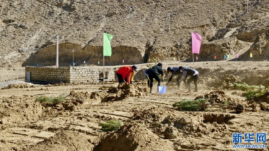 3月15日,西藏銀行員工正在進(jìn)行植樹(shù)比賽。新華網(wǎng) 柑丹鴦琦 攝