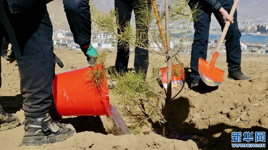 在現(xiàn)場(chǎng),參加植樹(shù)的西藏銀行員工們,熱情飽滿、干勁十足,7人一組,搬苗、扶枝、封土、澆水、每道工序都做得仔細(xì)認(rèn)真。經(jīng)過(guò)一上午的奮戰(zhàn),300余棵油松“安家落戶”,為拉薩又增添了一片新綠。