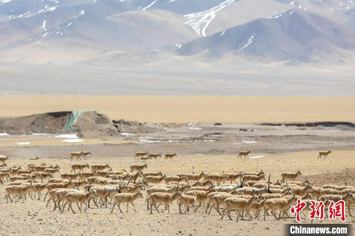 圖為3月27日,西藏阿里改則縣的藏羚羊群。邊巴 攝