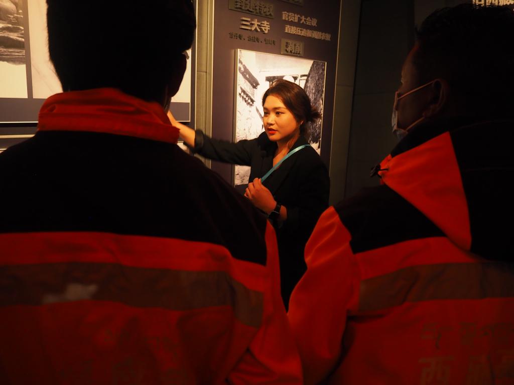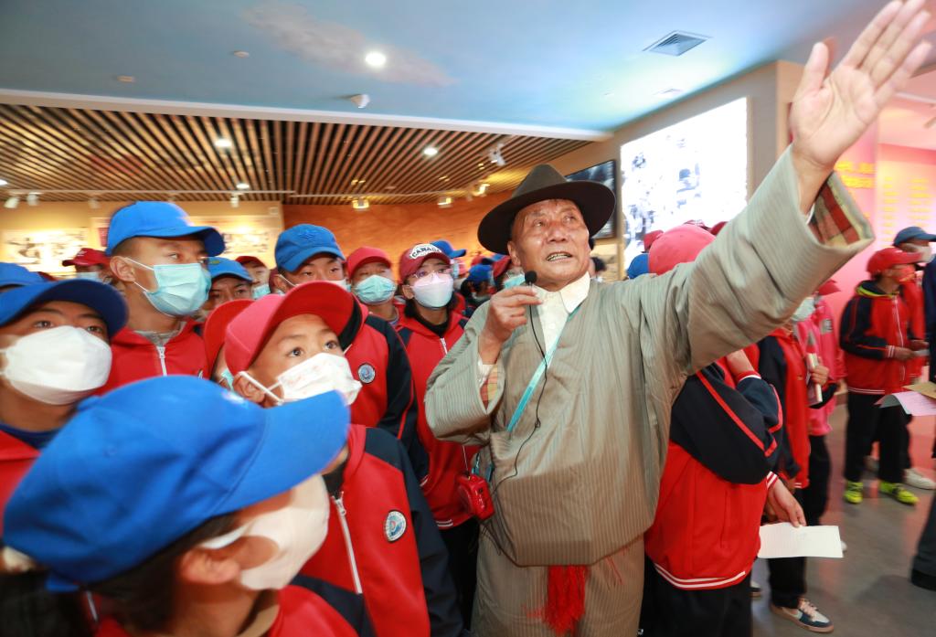 普次仁正在給參觀的學(xué)生進(jìn)行解說(2022年3月28日攝)。(受訪者供圖)