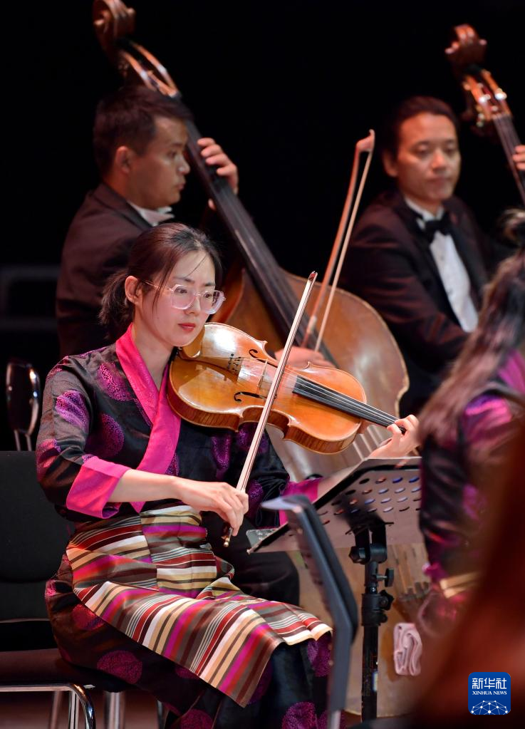 西藏愛樂樂團的藝術(shù)家在演奏交響樂《古格幻想》(4月3日攝)。新華社記者 張汝鋒 攝