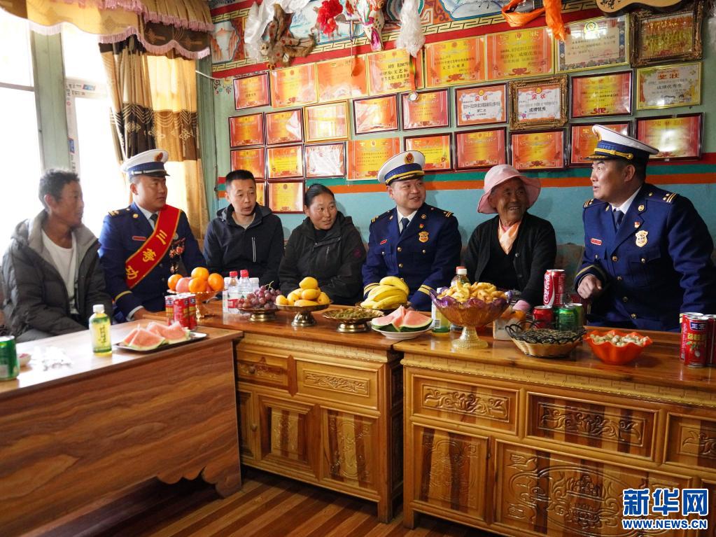 西藏林芝市森林消防支隊(duì)代表與洛桑頓珠家屬交流談心(4月15日攝)。(李國燾攝 新華網(wǎng)發(fā))