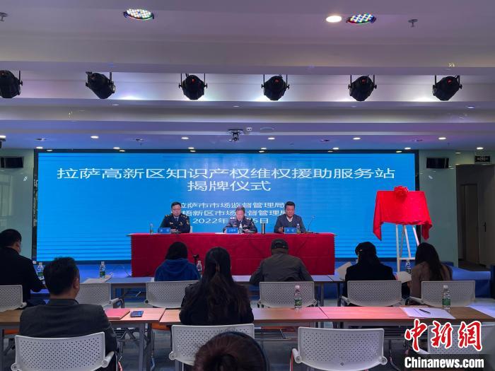 圖為拉薩市高新區(qū)知識產權維權援助服務站揭牌儀式現場。貢嘎來松 攝