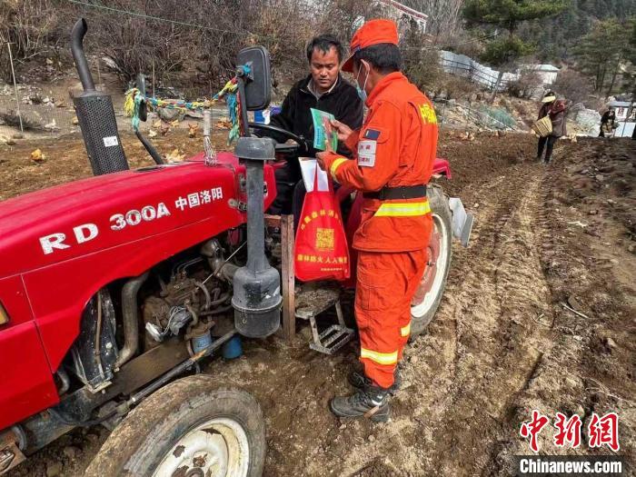圖為消防救援人員向民眾發(fā)放防火科普宣傳手冊(cè)。洛桑頓珠 攝