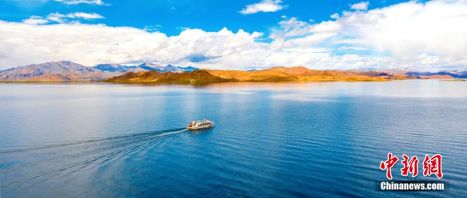 位于西藏阿里地區(qū)日土縣境內的班公湖又稱措木昂拉仁波,藏語意為“長脖子天鵝”,湖面海拔4240米,長約155公里,南北寬約15公里,水深57米,為高寒氣候,湖內有世界上海拔最高的鳥島。連日來,這里晴空萬里,在藍寶石般的湖面上,小白鳥自由游弋。鳥瞰班公湖,景色如畫。貢桑拉姆 大象 嘎瑪次仁 攝