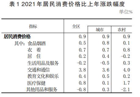 全年全區(qū)居民消費價格比上年上漲0.9%。商品零售價格上漲1.5%。工業(yè)生產者出廠價格上漲1.5%。