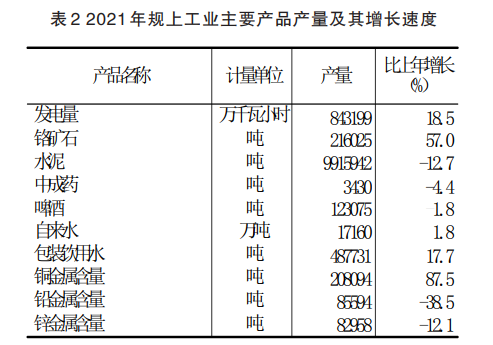 全年規(guī)模以上工業(yè)中,黑色金屬礦采選業(yè)增加值比上年增長57.5%,有色金屬礦采選業(yè)增長36.4%,農副食品加工業(yè)增長9.0%,食品制造業(yè)下降39.5%,酒、飲料和精制茶制造業(yè)下降0.1%,醫(yī)藥制造業(yè)增長17.9%,非金屬礦物制品業(yè)下降8.8%,電力、熱力生產和供應業(yè)增長4.8%。