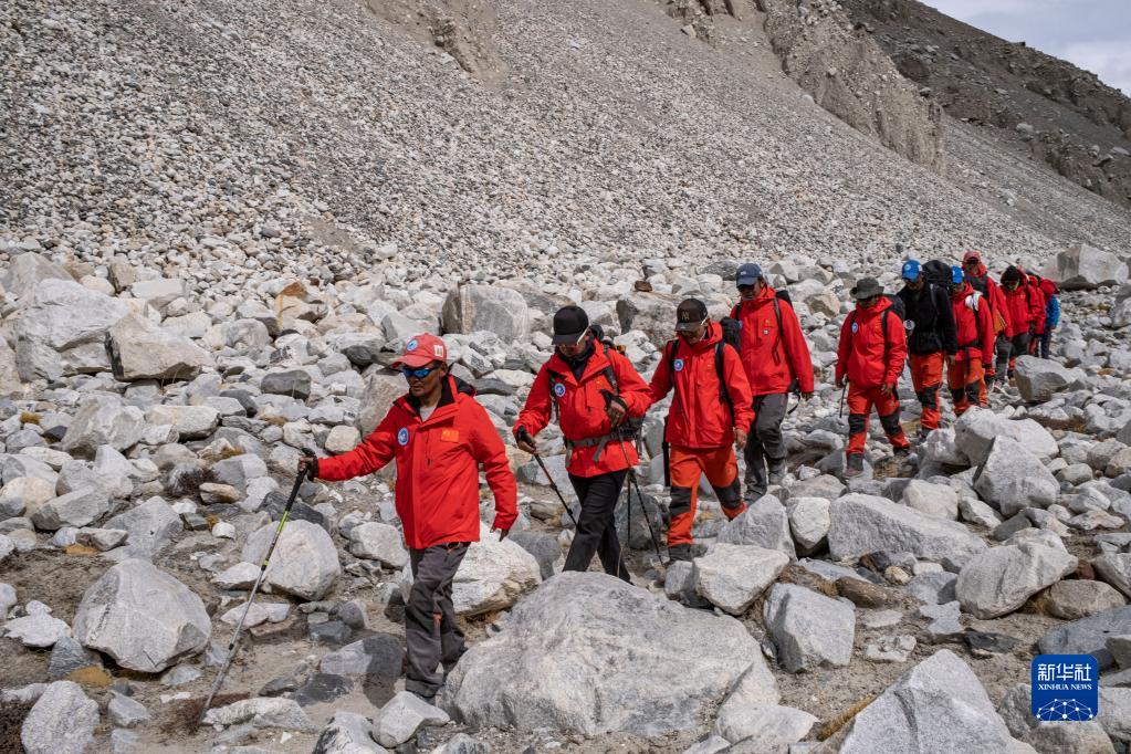 科考隊(duì)員正在返回大本營(yíng)(5月5日攝)。新華社記者 姜帆 攝