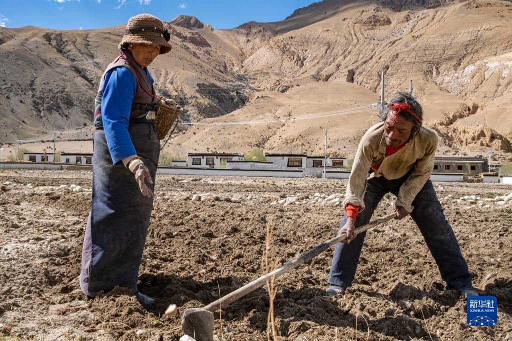 西藏定日縣扎西宗鄉(xiāng)日白拉新村的村民在做播種前的準備(5月10日攝)。新華社記者 姜帆 攝
