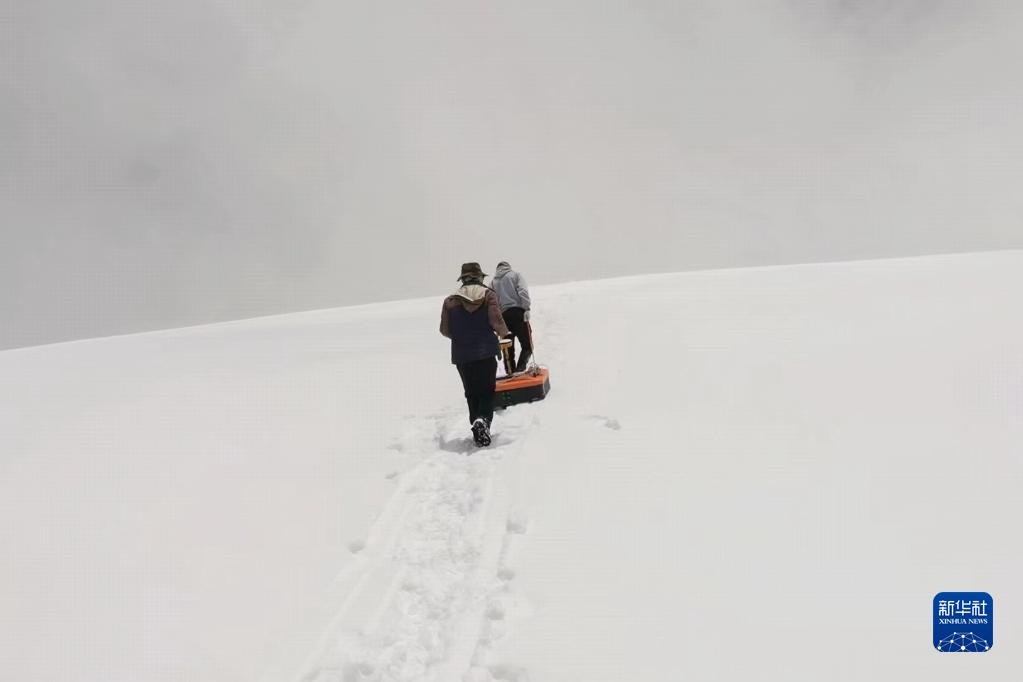 與此同時,科研人員拖著冰川雷達(dá)測厚儀,在東絨布冰川表面沿著“Z”字形軌跡,向下發(fā)送探測波獲取厚度數(shù)據(jù)。