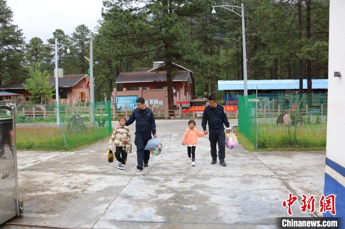 圖為民警接扎西江措(左一)和崗嘎拉姆(右二)到派出所過(guò)周末。旺旦次仁 攝