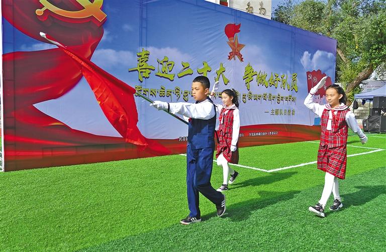 拉薩市第一小學(xué)舉行“喜迎二十大、爭做好隊(duì)員”少先隊(duì)員入隊(duì)儀式。記者 李 攝