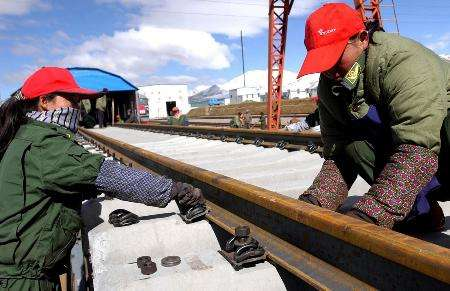 姑娘們生產(chǎn)的最后一排軌落在了拉薩火車站。