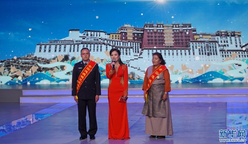圖為晚會現(xiàn)場獲獎(jiǎng)?wù)吆嫌埃?月31日攝)。新華網(wǎng)發(fā) 貢桑央吉(實(shí)習(xí)生)攝.