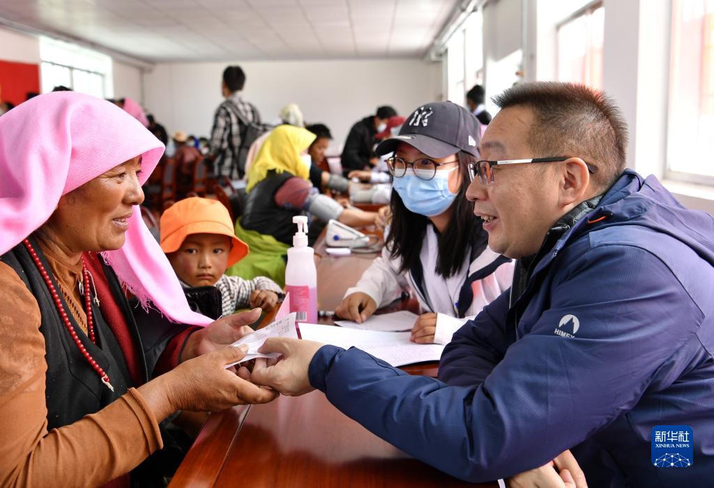 當(dāng)日,來自拉薩市人民醫(yī)院的北京市第七批“組團(tuán)式”援藏醫(yī)療專家,來到當(dāng)雄縣格達(dá)鄉(xiāng)為居民義診。