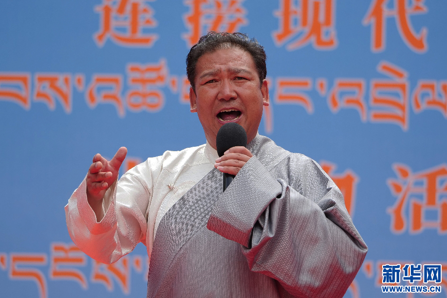 6月11日,著名藏戲表演藝術(shù)家邊點旺久在演唱傳統(tǒng)藏戲唱腔。新華網(wǎng) 旦增努布攝