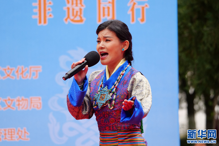 6月11日,拉薩朗瑪自治區(qū)級傳承人次仁央宗在演唱朗瑪《念波格?!?。新華網(wǎng) 旦增努布攝