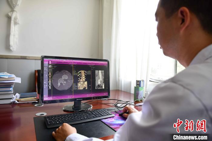 圖為何蔚副主任醫(yī)師仔細翻閱患者CT片子?!∝暩聛硭?攝