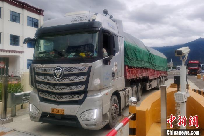 圖為貨運車輛駛?cè)肓种グ鸵顺迿z測站,符合要求后可在西藏林拉高等級公路上行駛。西藏自治區(qū)交通運輸廳 供圖