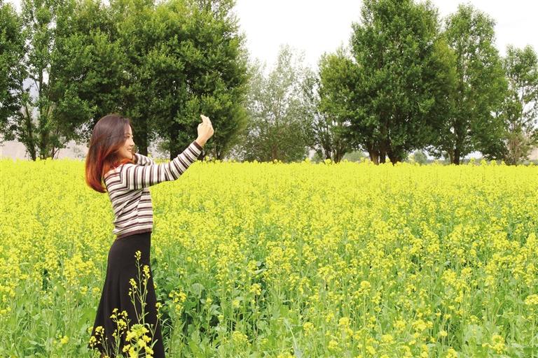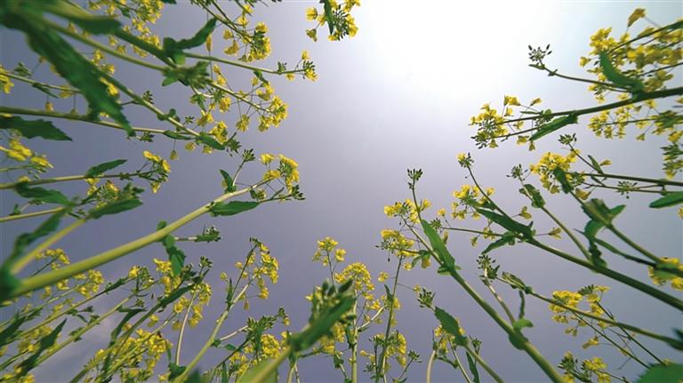 一到達(dá)孜區(qū),便可看到公路兩邊都是油菜花。記者來(lái)到塔杰鄉(xiāng)巴嘎雪村的油菜種植地,頓時(shí)被眼前的景色吸引,這里層層疊疊的油菜花海黃綠相映,在陽(yáng)光的照耀下絢麗奪目,將大地渲染成“金黃海洋”,微風(fēng)吹拂下,黃花綠葉的油菜花搖曳著曼妙身姿,清新婉約,當(dāng)你置身油菜花海中,花香撲面而來(lái),讓人心曠神怡。