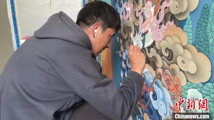 資料圖為裝修工人正在為新房繪制藏式壁畫(huà)。次成達(dá)吉 攝