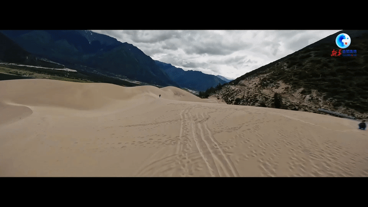 飛翔遠(yuǎn)眺,夏季的雅魯藏布江河谷綠意蔥蔥,生機(jī)盎然。江畔的沙丘、綠洲和周圍的青山和諧共處,相映成趣。