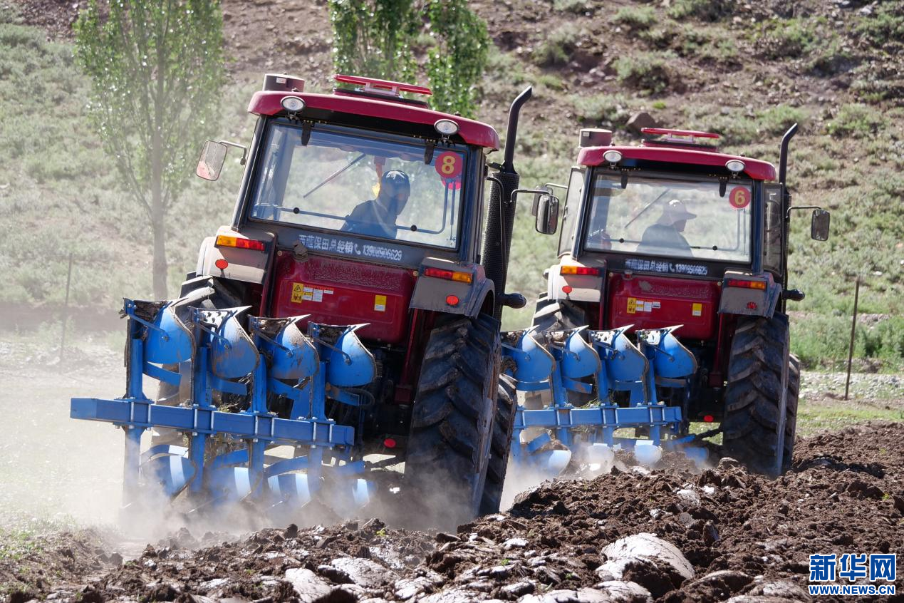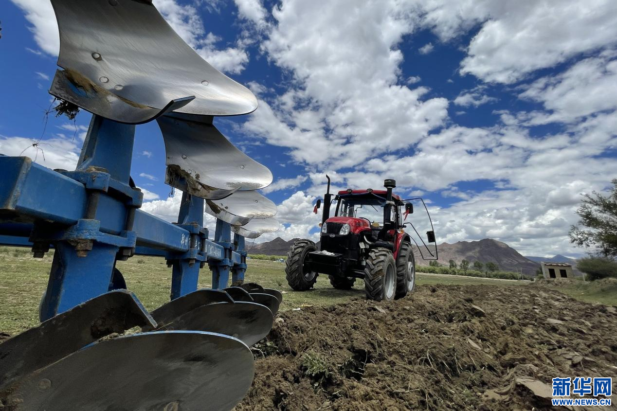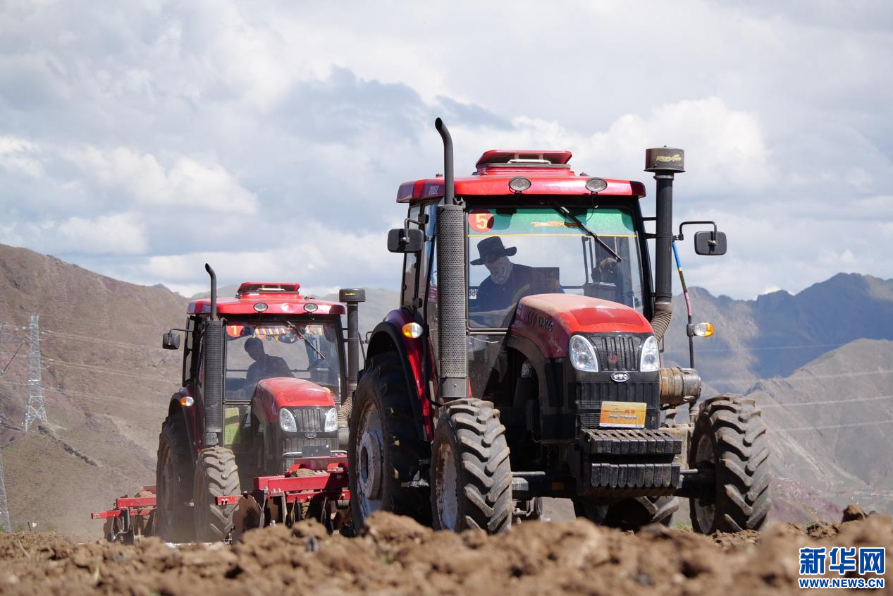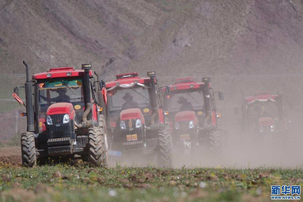 6月20日,甘曲鎮(zhèn)江角村農(nóng)機合作社的農(nóng)機在進行播種。新華網(wǎng) 旦增努布 攝