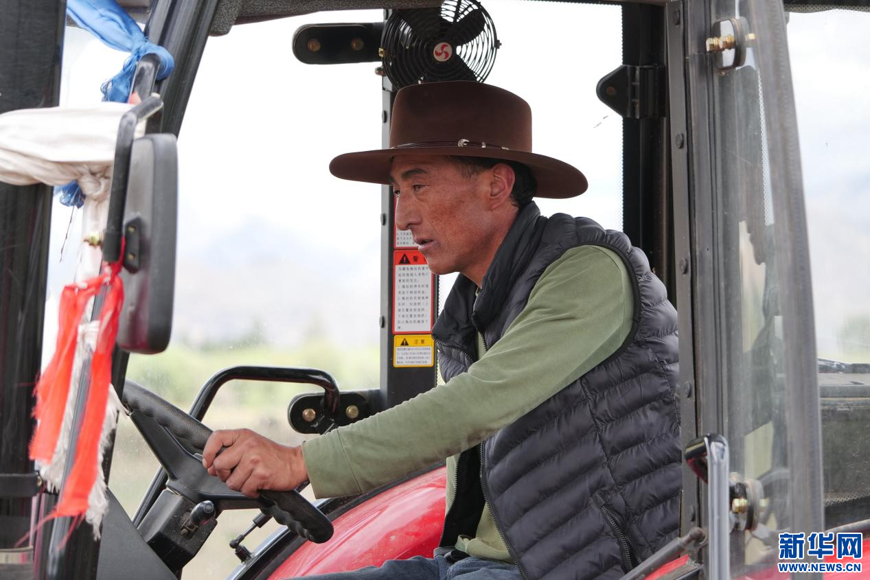 6月20日,甘曲鎮(zhèn)江角村農(nóng)機合作社負(fù)責(zé)人米瑪在駕駛農(nóng)機。新華網(wǎng) 旦增努布 攝