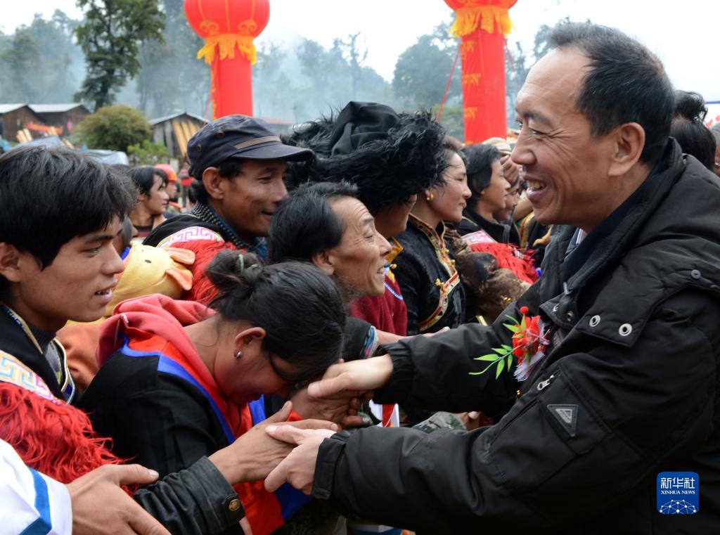 2013年10月31日,墨脫縣通車,當(dāng)?shù)厝罕姼兄x建設(shè)者。墨脫公路于10月31日正式通車,這標(biāo)志著墨脫將正式擺脫“全國(guó)唯一不通公路縣”的歷史。新華社記者 覺(jué)果 攝