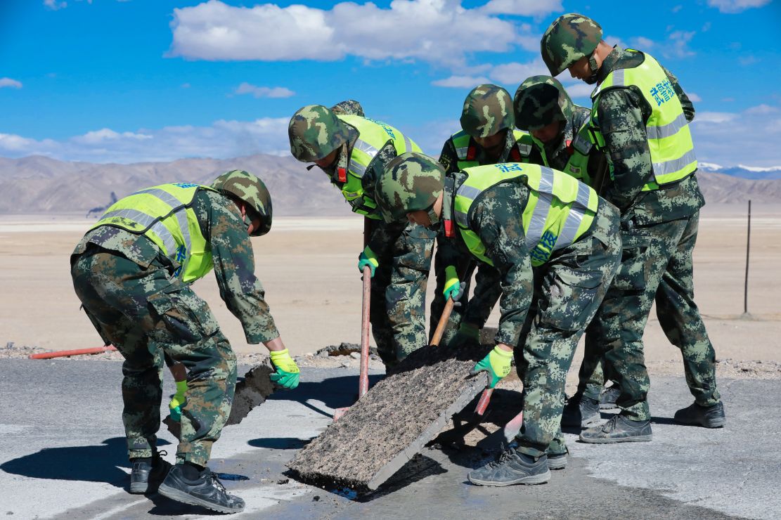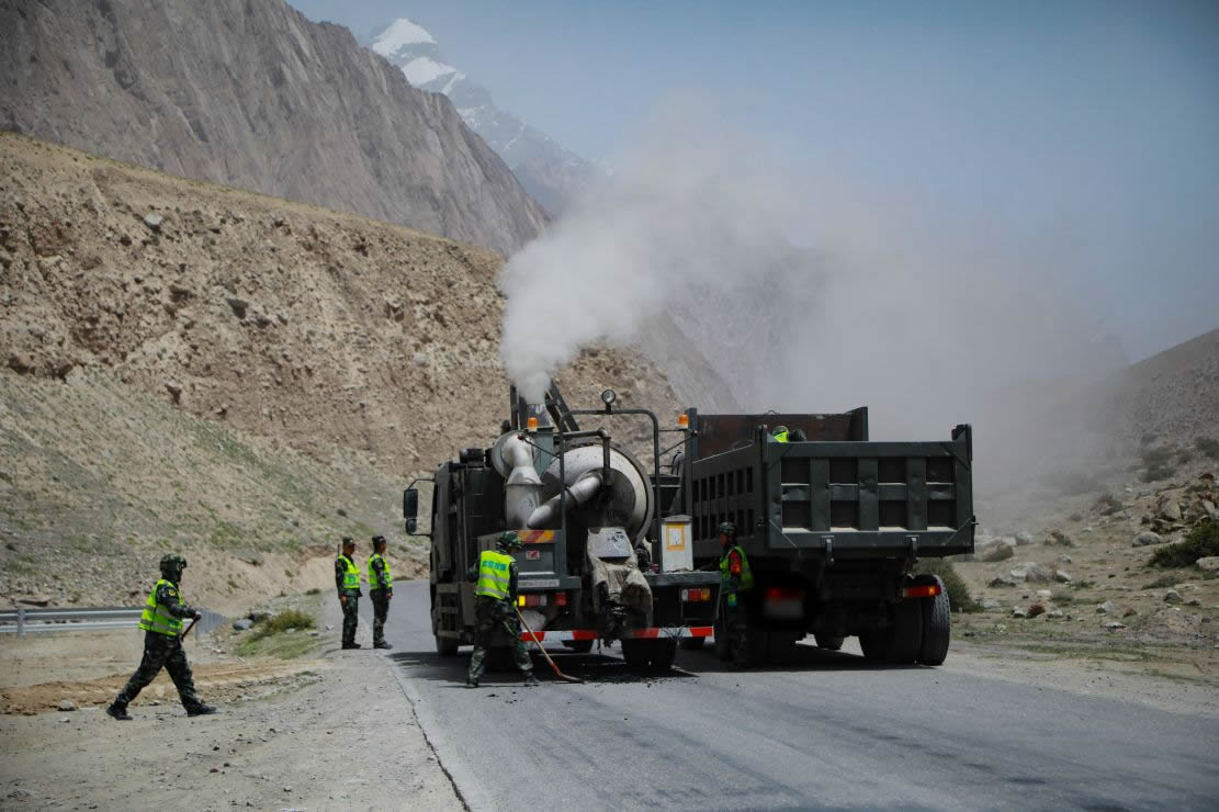 對(duì)此,該支隊(duì)充分利用新疆當(dāng)季天氣較好時(shí)機(jī),在新藏公路新疆段600多公里道路進(jìn)行病害集中治理,官兵們分別在庫地達(dá)坂、麻扎達(dá)坂、黑卡子達(dá)坂、奇臺(tái)達(dá)坂等多個(gè)病害點(diǎn)展開工作。