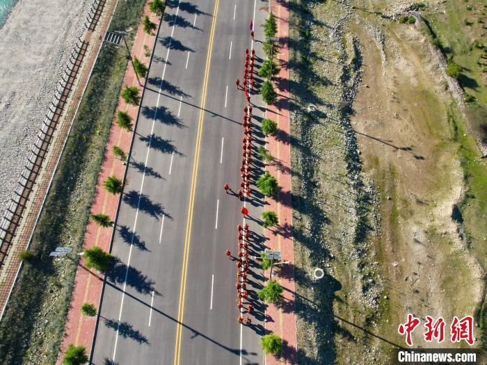 圖為拉練隊伍穿梭在公路間。 林芝市森林消防支隊供圖