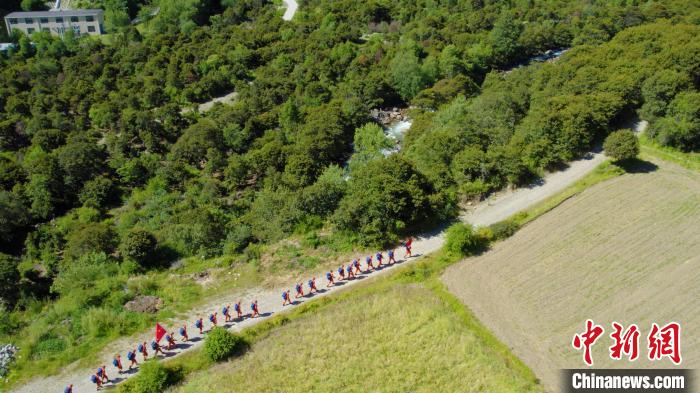 圖為拉練隊伍在烈日下跋涉。 林芝市森林消防支隊供圖