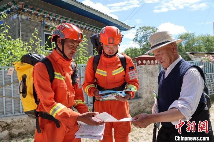 圖為拉練途中為駐地群眾普及防火知識。 林芝市森林消防支隊供圖