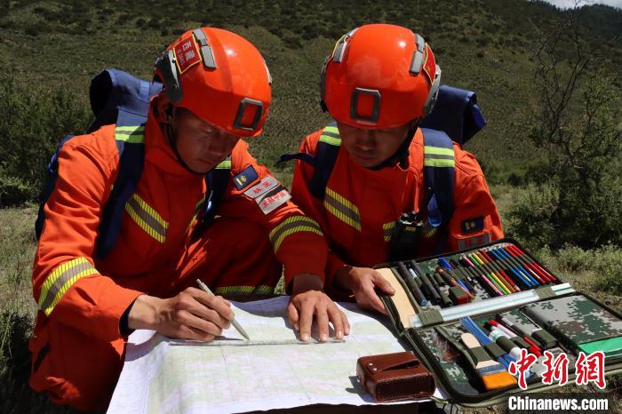 圖為隊員開展識圖用圖、判定方位。 林芝市森林消防支隊供圖