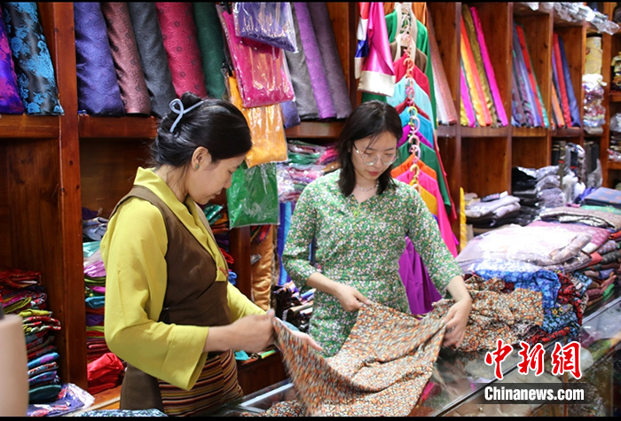 圖為7月20日,旦增卓瑪(右)和媽媽在位于八廓街的自家藏裝店內。 中新社發(fā) 扎西旦增 攝