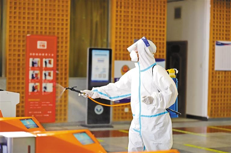 圖為拉薩火車(chē)站工作人員開(kāi)展消殺工作。記者 袁海霞 通訊員 李海星 攝