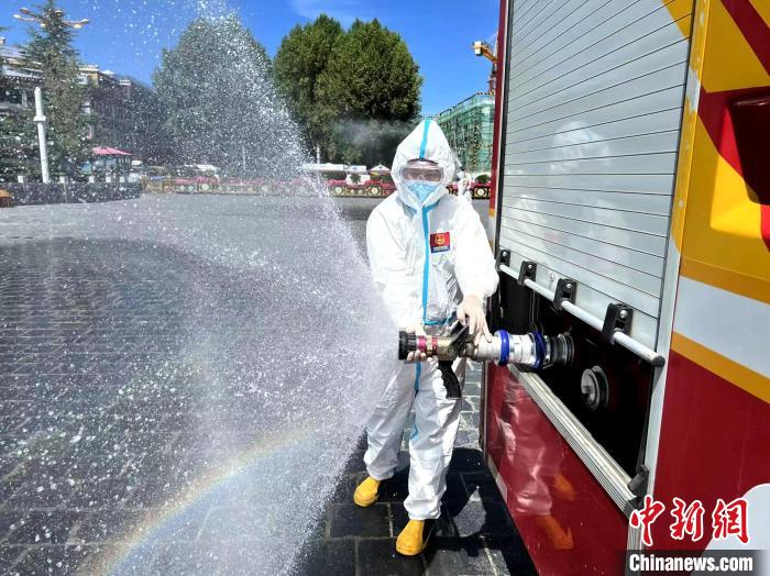 圖為拉薩消防指戰(zhàn)員在主城區(qū)進(jìn)行消殺。 拉薩市消防救援支隊 攝