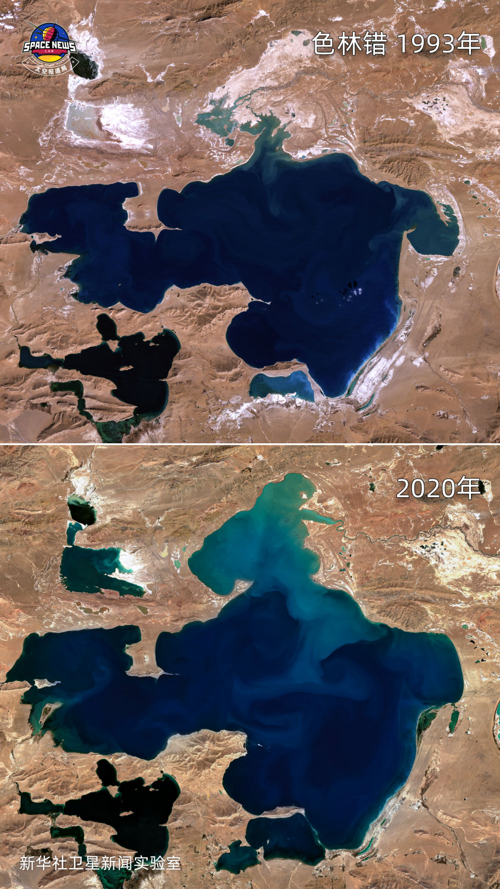 岡底斯山北麓的色林錯湖是中國第三大咸水湖,近年由于冰川融水補給量增加,湖泊面積不斷擴大,特別是湖區(qū)北部、東南部、南部區(qū)域。